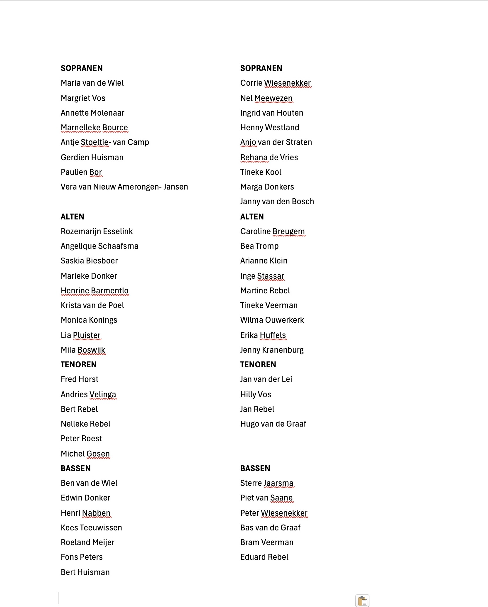 De audities voor nieuwe koorleden zijn in november 2025 gehouden. Op grond van de uitslag bestaan de twee koren uit de volgende leden: